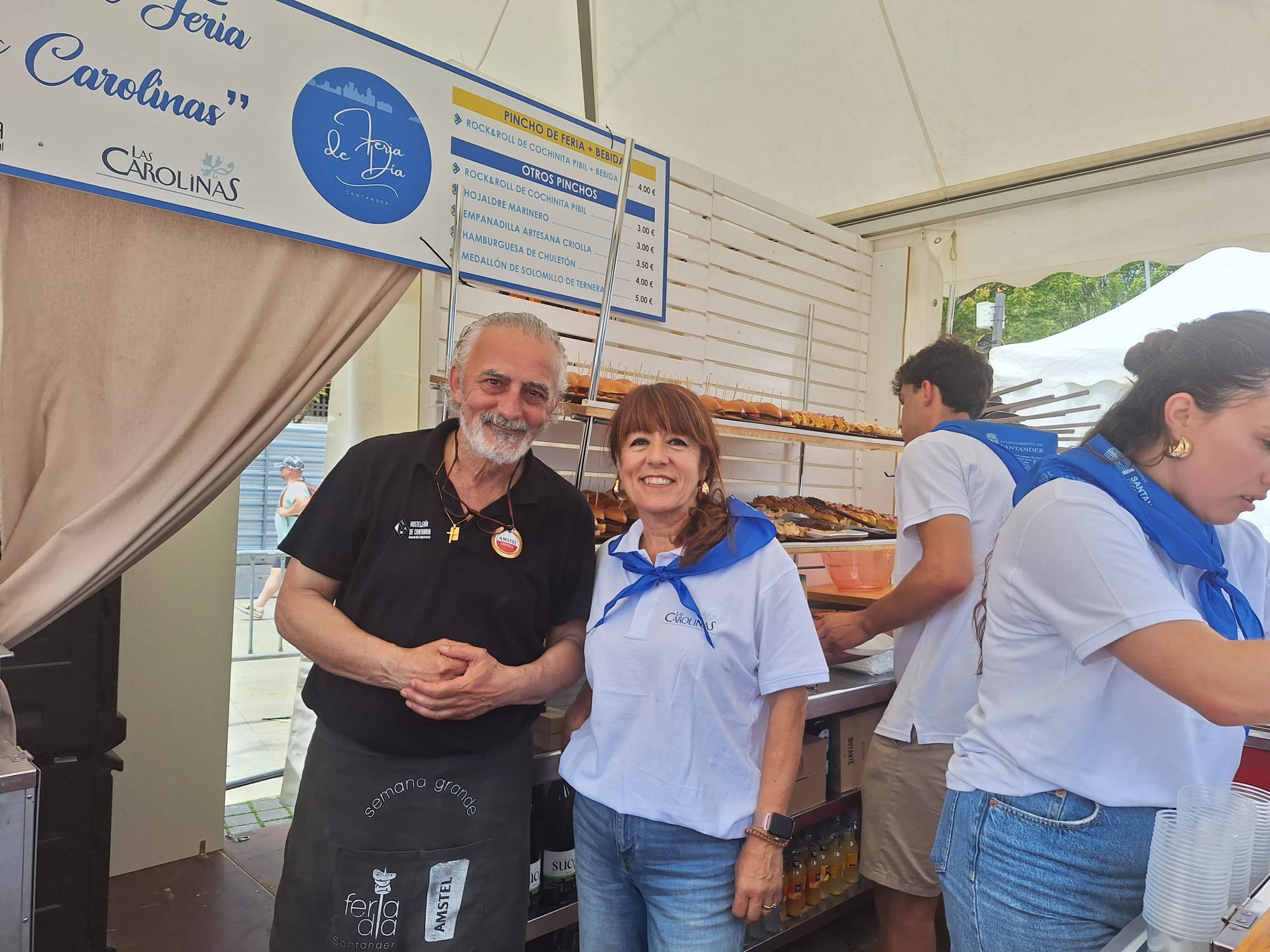 La alcaldesa, Gema Igual, y el presidente de la Asociación Empresarial de Hostelería de Cantabria, Eduardo Lamadrid, han asistido hoy a la apertura de la Feria de Día, que este año luce una estética totalmente renovada y se concentra en cuatro zonas de la ciudad, en concreto, en la Plaza del Ayuntamiento, Plaza de Pombo, Plaza Alfonso XIII y Parque de Mesones.