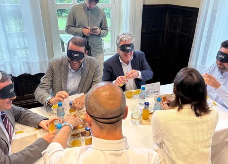 Una veintena de alcaldes y alcaldesas de nuestra Comunidad desayunaron a ciegas para ponerse en la piel de una persona con discapacidad visual, en una actividad tan cotidiana como es el desayuno. Provistos de antifaces y orientados por técnicos de Rehabilitación de la ONCE, se enfrentarán a este reto en Las Carolinas junto al presidente de la AEHC, Eduardo Lamadrid y la directora, Bárbara Gutiérrez.