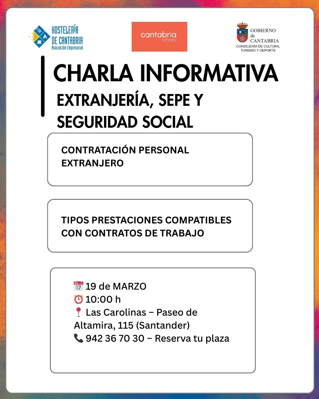 Te invitamos a una charla informativa conjunta de Extranjería, SEPE y Seguridad Social, donde abordaremos temas clave para el sector 👇
