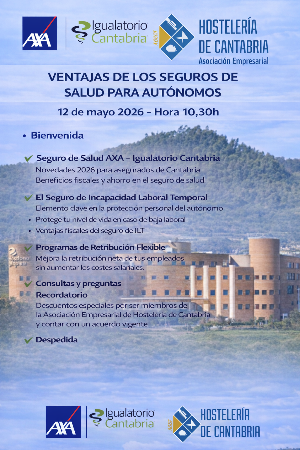 En colaboración con AXA – Igualatorio Cantabria, te invitamos a una sesión informativa exclusiva dirigida especialmente a autónomos y empresarios del sector.